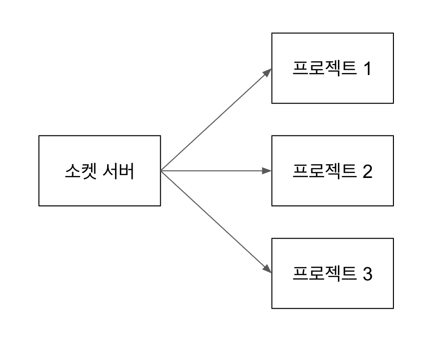 상호 통신할 필요는 없고, 소켓 서버에서 프로젝트들한테 알림만 주면 되는 기능이 필요했습니다.