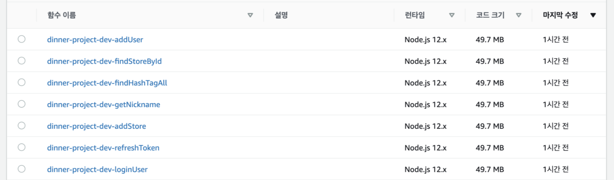 AWS 콘솔에 들어가서 확인해보는데, 함수 각각의 크기가 너무 큰 것을 확인 했습니다.