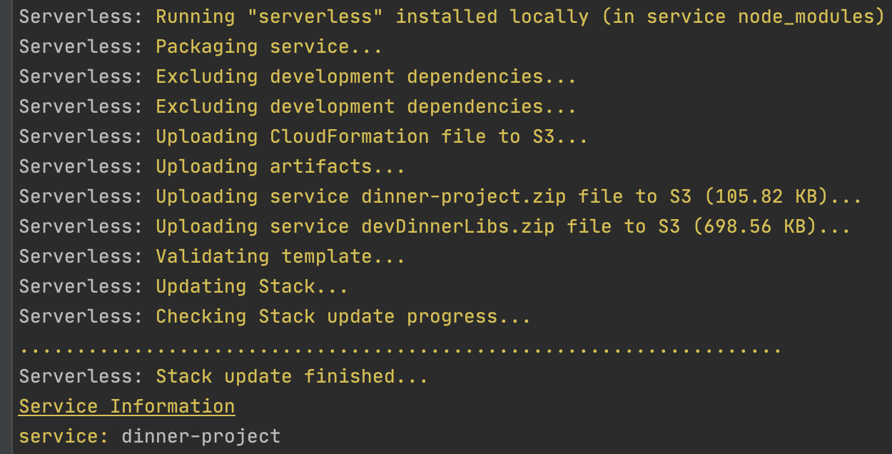 함수에서 사용하고자 하는 Layer가 있으면 {Ref: DevDinnerLibsLambdaLayer}라고, (앞 대문자) 이름 + LambdaLayer라고 적어줘야 합니다.(공식문서에 따름)