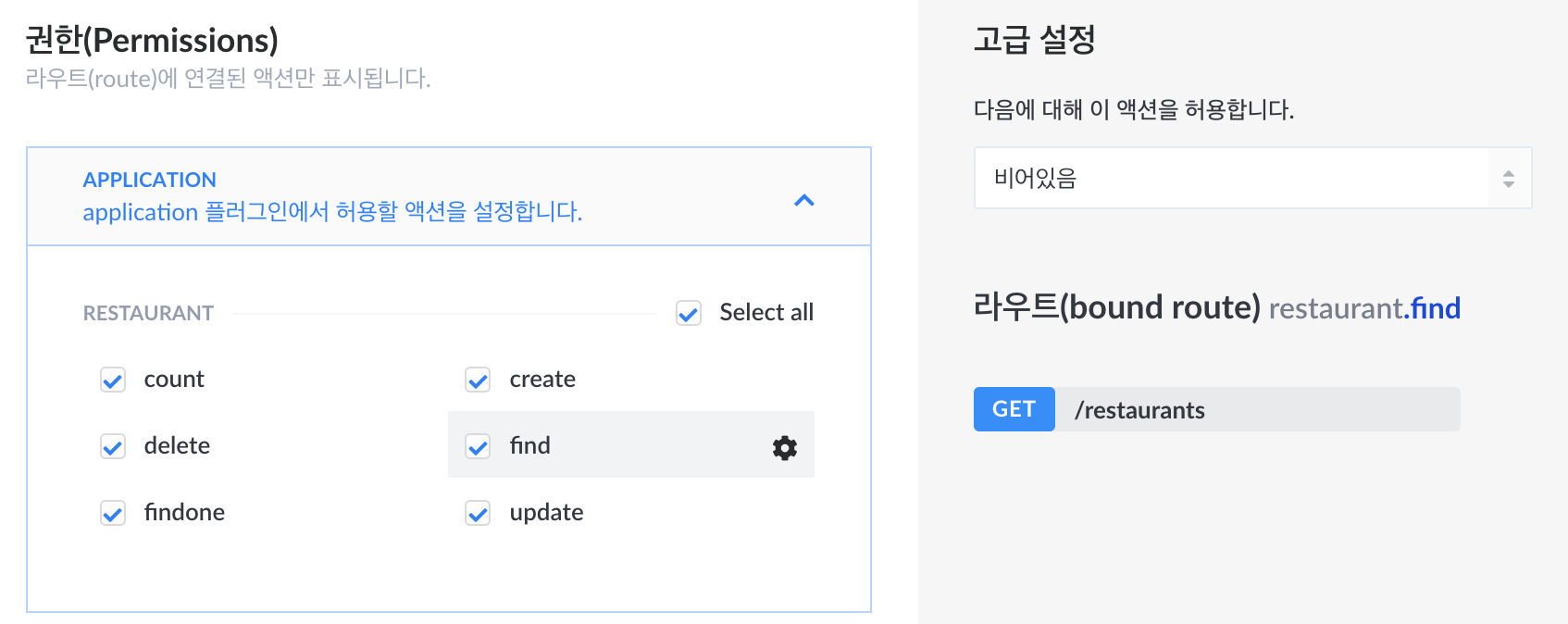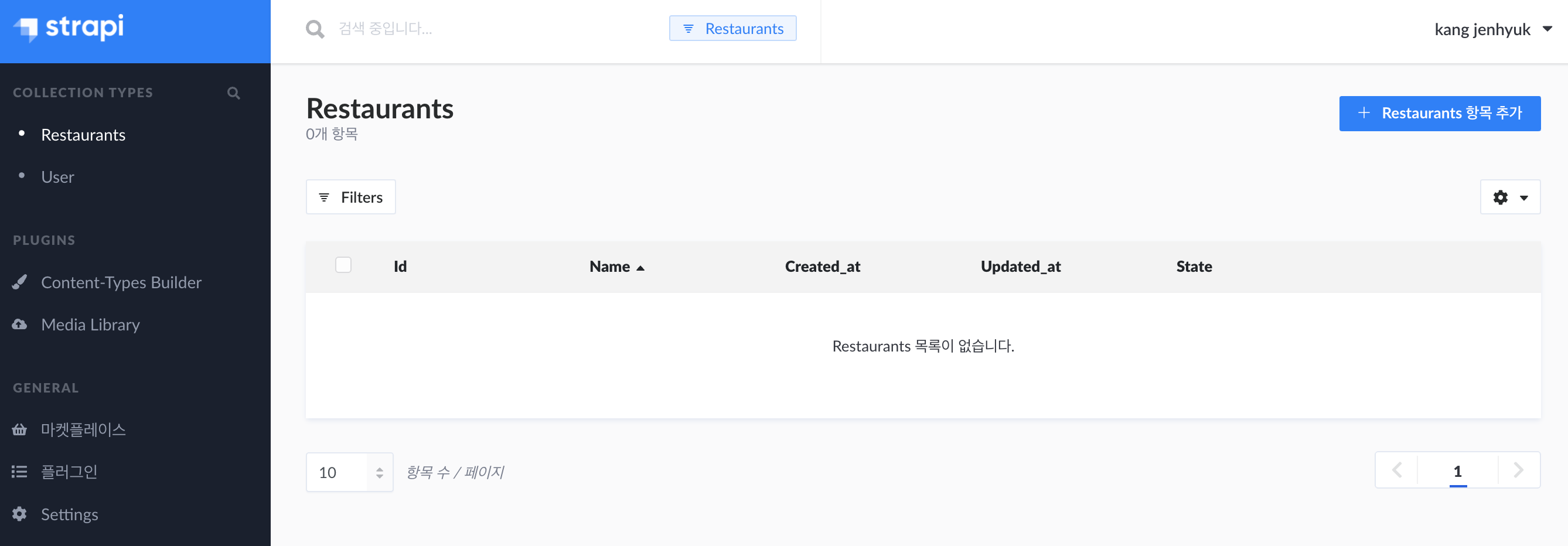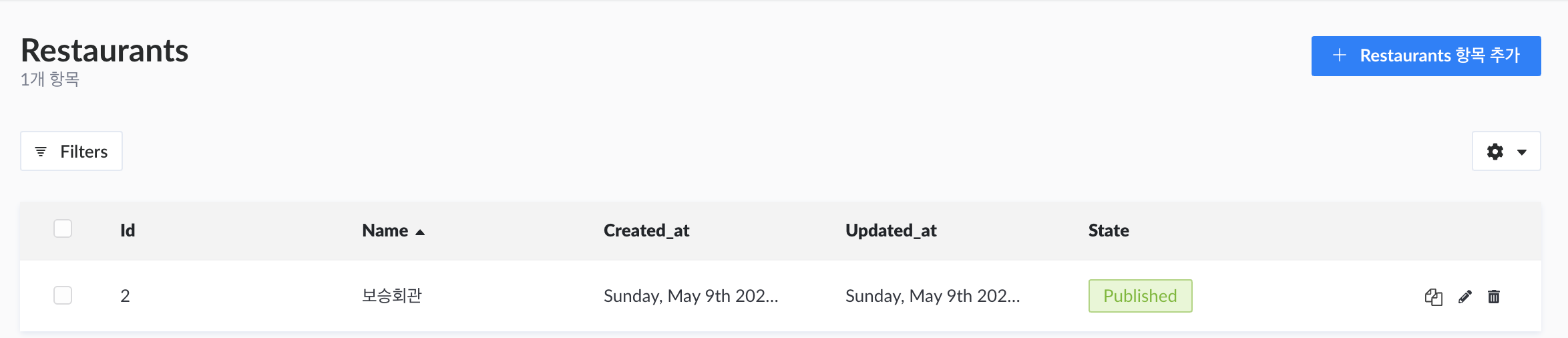 방금 만든 restaurant의 CRUD 형태를 볼 수 있습니다.