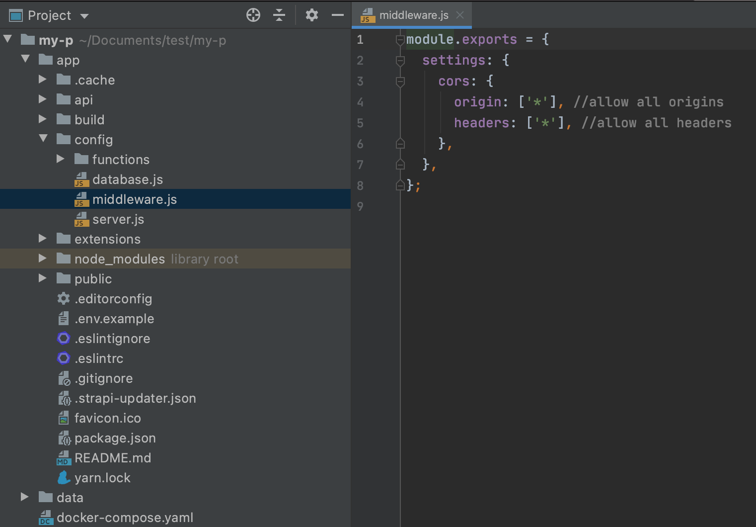 프로젝트 폴더 -> app -> config -> middleware.js 파일을 만든 후 아래와 같이 적어줍니다.