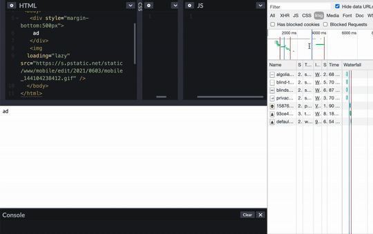 아래 GIF를 보시면 이미지가 보일 때 쯤 로딩하는 것을 볼 수 있습니다.
