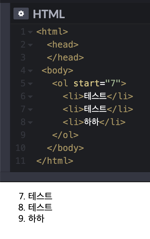 3. OL의 `start` 속성.