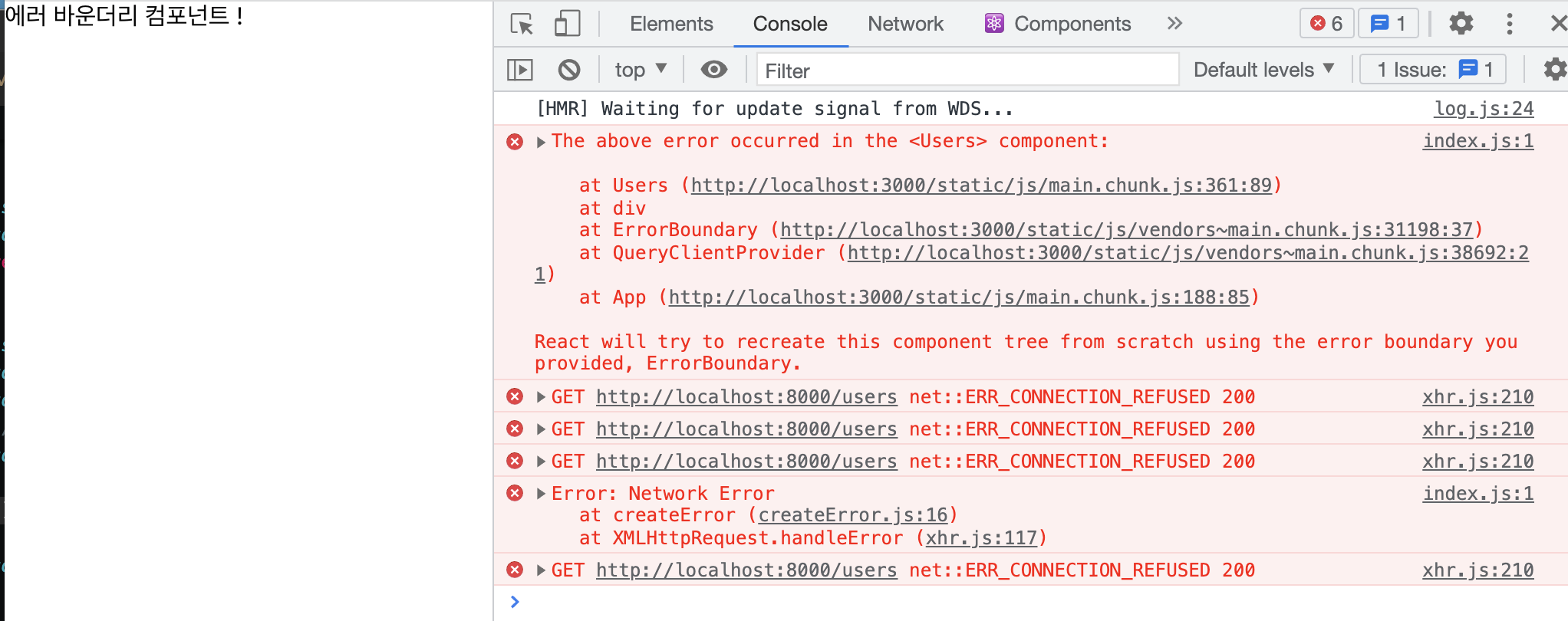 그 후 ErrorBoundary를 선언해주면 하위 컴포넌트들은 이제 패칭 오류가 날 때 해당 ErorrComponent가 보입니다.