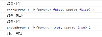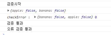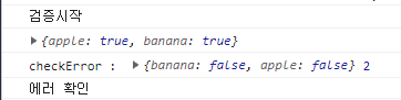 그리고 checkError에 { banana: true, apple: true } 값이 나오는 것으로 예상되죠.