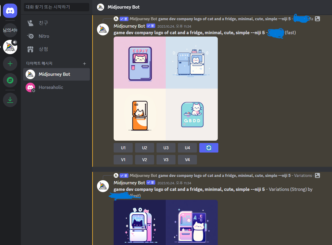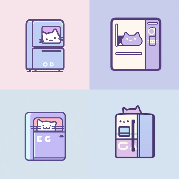 미드저니는 내가 원하는 것이 명확하지 않을 때, 아이데이션 하면서 가다듬고 그럴듯한 결과물을 만들어 내는 데는 뛰어났다. 예를 들어 우리는 귀여운 느낌의, 고양이가 있는, 냉장고를 원해서 여러 가지 명령어를 입력하면서 그럴듯한 결과물을 만들어 냈다.