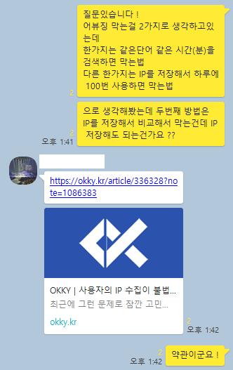 사용자 IP를 막 저장해도 괜찮은지 고민이 되었다.