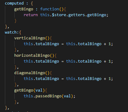 getter를 이용해서 값이 들어오면 passedBingo 함수를 실행시킵니다.