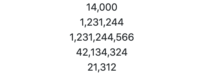 commaTest: [14000,1231244,1231244566,42134324,21312],
