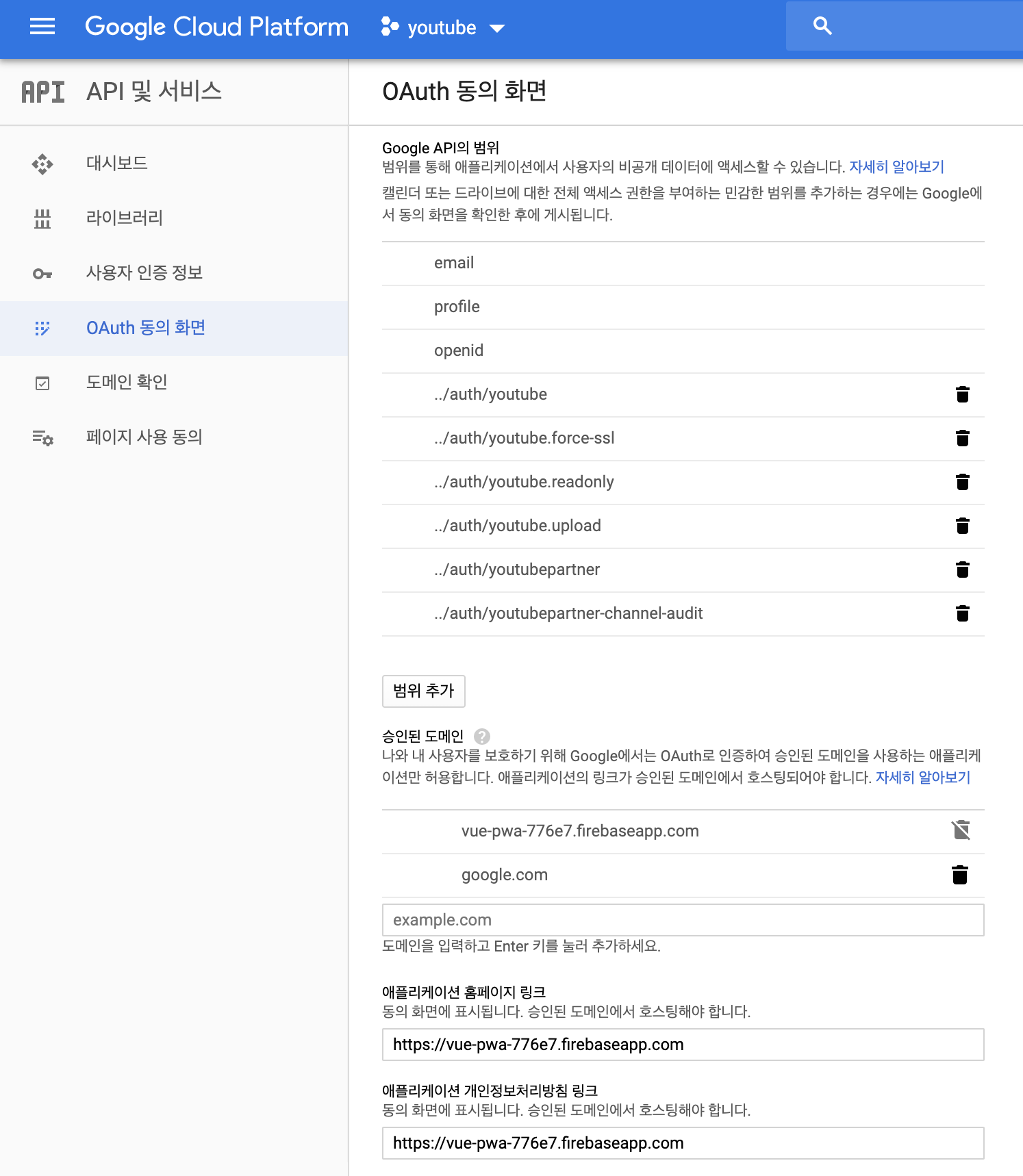 Vue - google OAuth2 로그인 및 Youtube 연동 본문