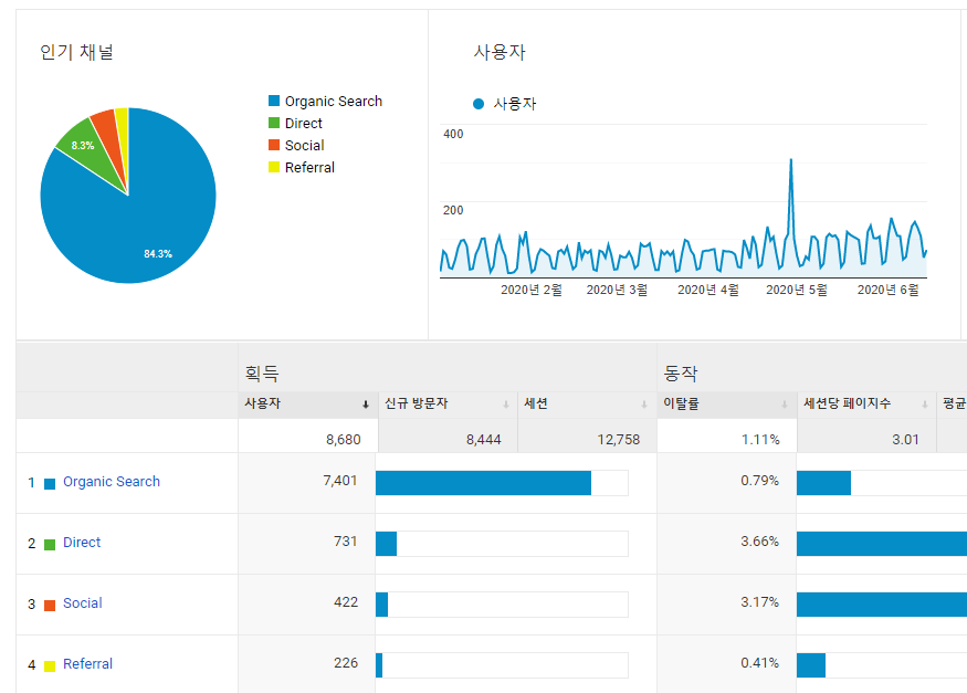 소셜 쪽은 생활코딩 그룹 쪽에서 대부분 유입되는 것으로 보인다.(그곳에만 올리기 때문에...) 이 글도 생활코딩 그룹에 공유할 예정인데 앞으로도 좋은 글 많이 공유할 기회가 있으면 좋을 것 같다.