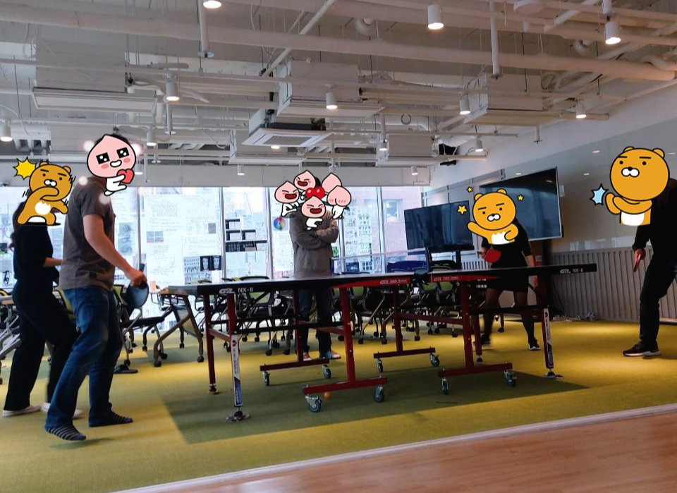 보통 일 때문에 힘든 것보다 사람 때문에 힘들면 마음이 지치는데, 이번에는 마음이 힐링되는 회사를 만났다. 코딩하다가 지치면 라운지로 도망가는데, 그곳에 있는 다양한 사람들과 대화하다 보면 복잡한 생각이 사라지기도 한다. 그리고 다른 팀이 무슨 작업 하는지 구경하기도 한다.