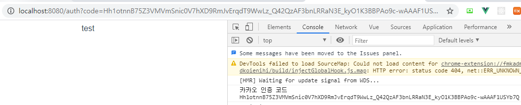 4. 인증코드에 받는 데 성공하면 redirectUri에 설정한 페이지로 이동하며, 쿼리에 인증 코드 정보가 담겨있음