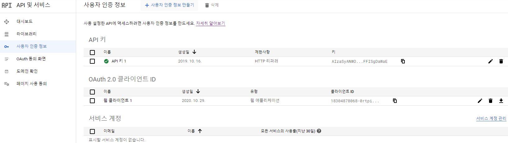 1. 아래 구글 개발자 콘솔에서 프로젝트 생성 및 OAuth 2.0 클라이언트 ID를 얻습니다.