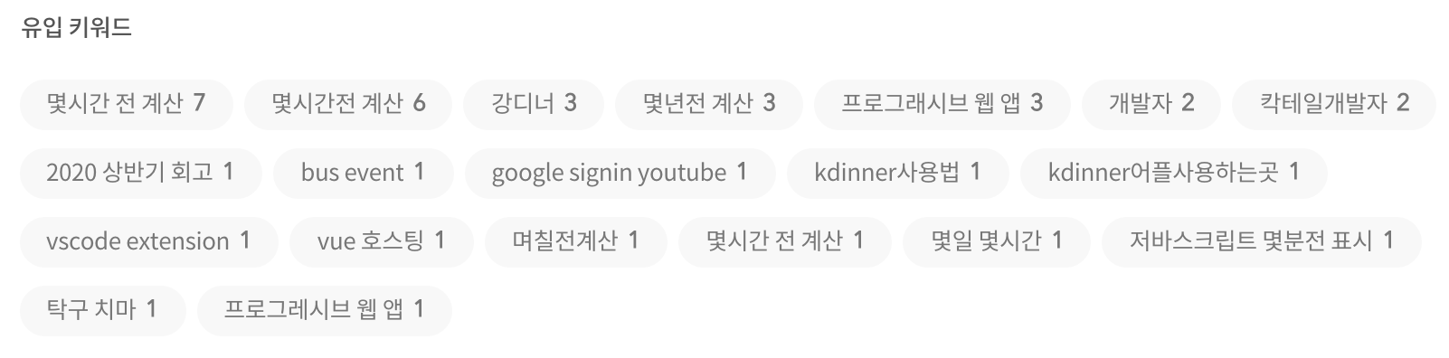 아래 사진은 티스토리에서 제공하는 유입 키워드인데, 별의별 게 다 있다.