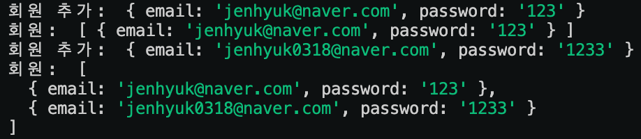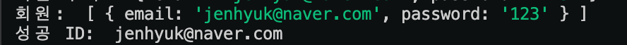 DB를 사용하지 않고 간단하게 user라는 변수 안에 넣습니다.