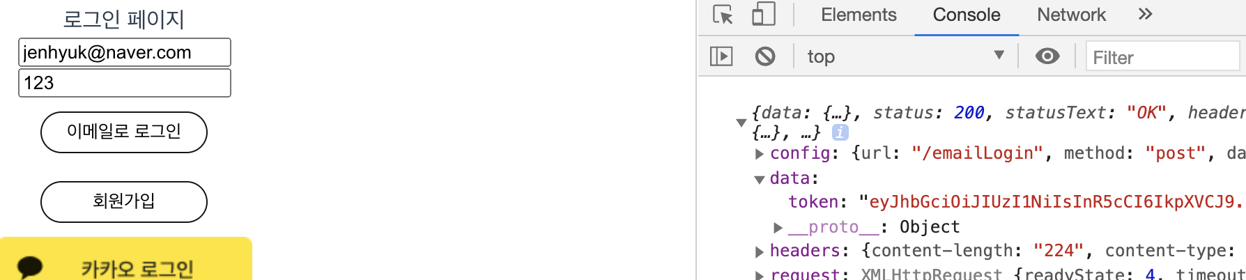 리턴 값에 토큰이 잘 오고 있는 것을 볼 수 있습니다.